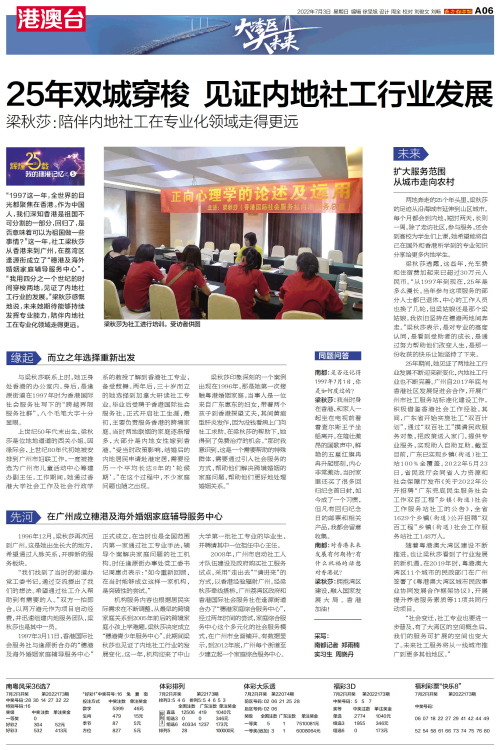 梁秋莎为社工进行培训。 受访者供图 “1997这一年,全世界的目光都聚焦在香港。作为中国人,我们深知香港是祖国不可分割的一部分,回归了,是否意味着可以为祖国做一些事