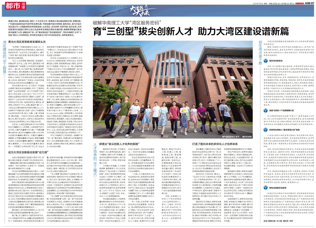 育“三创型”拔尖创新人才 助力大湾区建设谱新篇