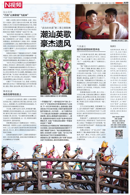 一声清脆的“嘭”,一根木槌在手中飞转,在一次次“8”字型的转动中顺着抛物线飞出指间,下一秒又牢牢停在掌心。身穿戏服、脸画油彩的少年们双手持槌,伴着节奏明快的锣鼓声变换队形,大步向前……这个场景开启