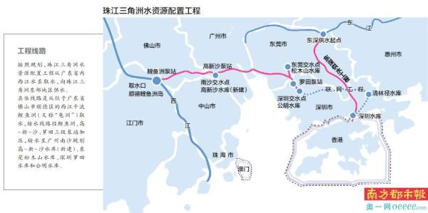 按照规划,珠江三角洲水资源配置工程从广东省内西江水系取水,向珠江三角洲东部地区供水。