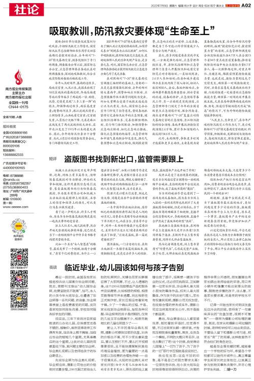 国新办8日举行国务院政策例行吹风会,介绍防汛救灾工作情况。国家防汛抗旱总指挥部秘书长周学文回答南都记者提问时指出,去年郑州“7·20”特大暴雨灾害,国务院组织了专门的调查,调查报告公布以后,国家防