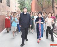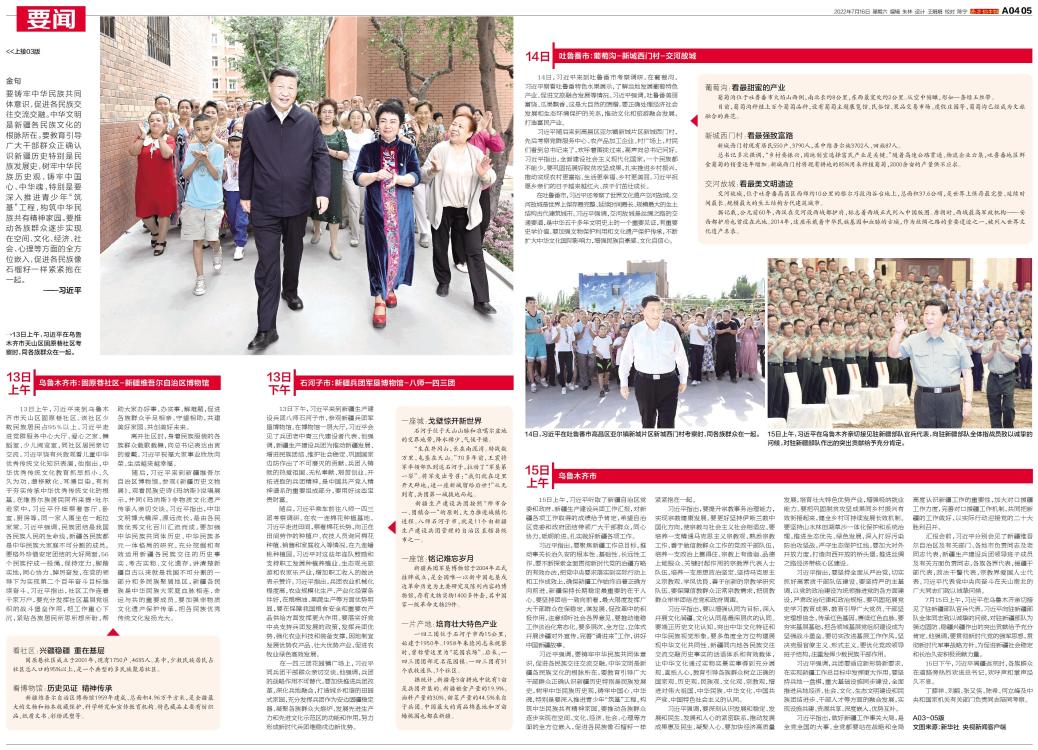 13日上午,习近平在乌鲁木齐市天山区固原巷社区考察时,同各族群众在一起。 14日,习近平在吐鲁番市高昌区亚尔镇新城片区新城西门村考察时,同各族群众在一起。