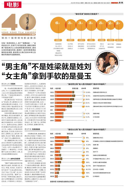 在每一场颁奖典礼上,除了“我要谢谢……”这样的话以外,还有不少好玩的花絮。南都记者梳理了提名两次以上的金像奖最佳男演员、最佳女演员和最佳导演,邀请你一起来回顾香港金像奖的名场面、最佳男女主角们的命