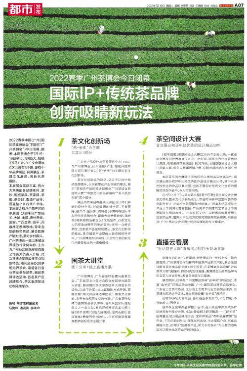 2022春季中国(广州)国际茶业博览会(下简称“广州茶博会”)今日闭幕。据悉,本届茶博会于7月15-19日举行,为期5天。规模3万平方米,在广交会展馆C区共设有3个馆,设有中华品牌展区、普洱展区、