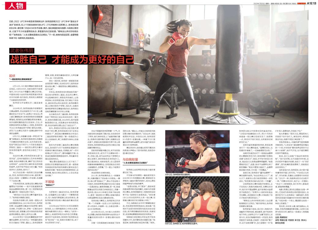 日前,2022 UFC年中奖各奖项新鲜出炉,张伟丽获得2022 UFC年中“最佳女子选手”的奖项。在上个月新加坡举行的UFC 275(终极格斗冠军赛)上,张伟丽仅用时8分钟,便在第二回合KO对手乔