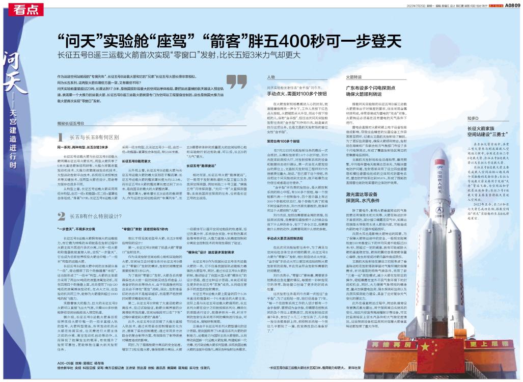 “问天”实验舱“座驾” “箭客”胖五400秒可一步登天