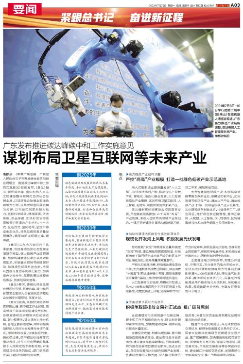 南都讯 《中共广东省委 广东省人民政府关于完整准确全面贯彻新发展理念 推进碳达峰碳中和工作的实施意见》日前发布,《意见》指出,要把碳达峰、碳中和纳入生态文明建设整体布局和经济社会发展全局,以经济社