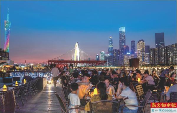 大暑之夜,琶醍休闲区,人们在江边乘凉。 南都拍客 陈晓红 摄
