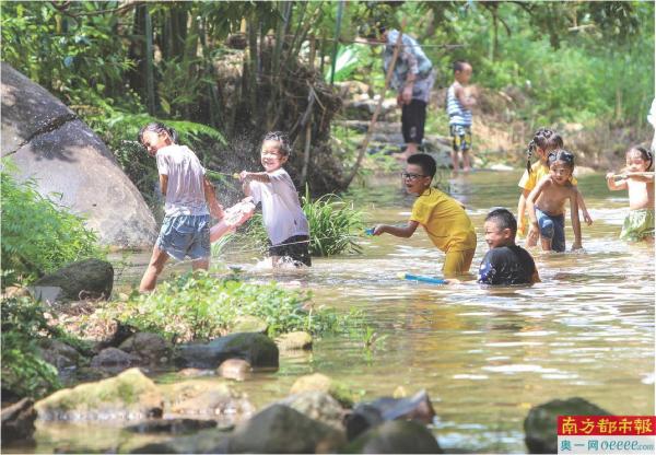 近日,从化南平修静小镇,游客戏水消暑。 南都拍客 陈志强 摄