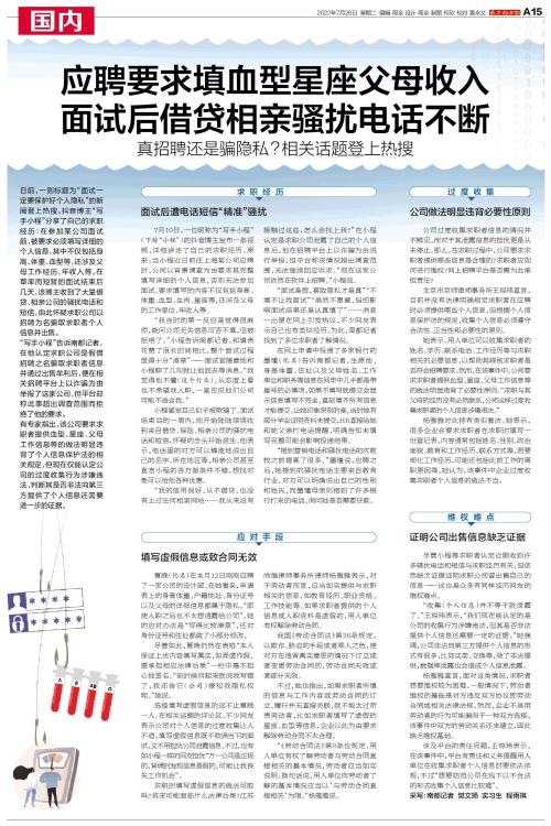 应聘要求填血型星座父母收入 面试后借贷相亲骚扰电话不断
