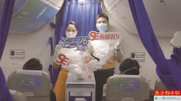 空乘送祝福 《南都娱乐》杂志十六周年主题飞机飞上天,这是南都娱乐首次与航空公司的跨界联动。