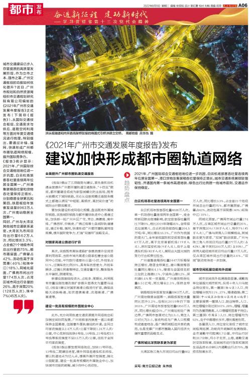 城市交通建设已步入存量提质的高质量发展阶段,作为立市之本、强市之基,广州交通枢纽的功能如何优化提升?近日,广州市规划和自然资源局组织市交通规划研究院有限公司编制的 《2021年广州市交通发展年度报