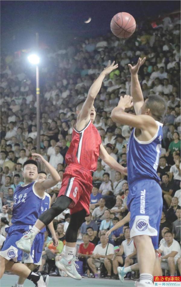 “村BA”比赛通常在早上八九点开始,一直持续到凌晨四五点。尽管比赛持续时间长,但仍座无虚席,来晚的村民只能自带凳子、梯子,站着观看比赛。