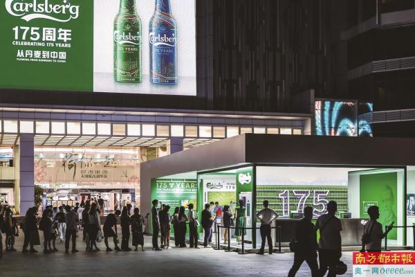 在天河城广场,嘉士伯联手中国先锋现代艺术家陆新建以丹麦与中国城市精神为灵感,打造《无尽的夏日》与《霓虹的夜晚》两幅作品,以嘉士伯175周年城市激流巡展天河城广场开幕。年轻人还可以在现场玩游戏,让智能机器手在酒瓶上刻录个性化的词语,在炎热的夏天成为亮点。此次合作,嘉士伯希望用先锋艺术家连接起品牌与年轻的消费者,让追求艺术、品质、新锐生活方式的消费者通过艺术感受来激发消费热情。