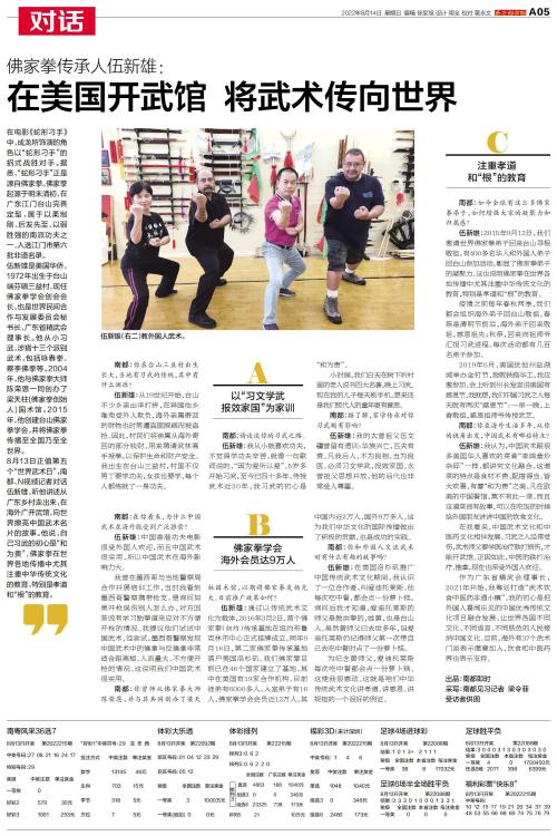 8月13日正值第五个“世界武术日”,南都、N视频记者对话伍新雄,听他讲述从广东乡村走出来,在海外广开武馆,向世界擦亮中国武术名片的故事。他说,自己习武的初心是“和为贵”,佛家拳在世界各地传播中尤其注重中华传统文化的教育,特别是孝道和“根”的教育。