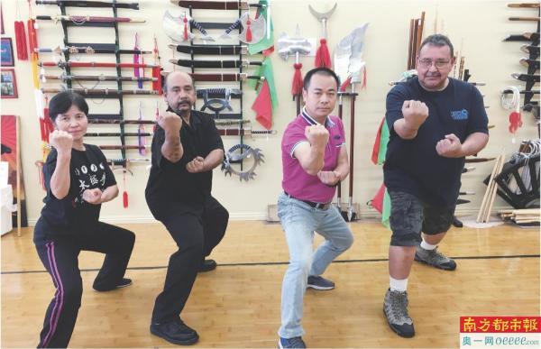 伍新雄(右二)教外国人武术。
