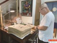 杨小彥在工作室。 《我读过他们的脸》书中杨小彥的自画像。 “以脸为书——杨小彦艺术展”上的王国维与鲁迅像。 书中的鲁迅