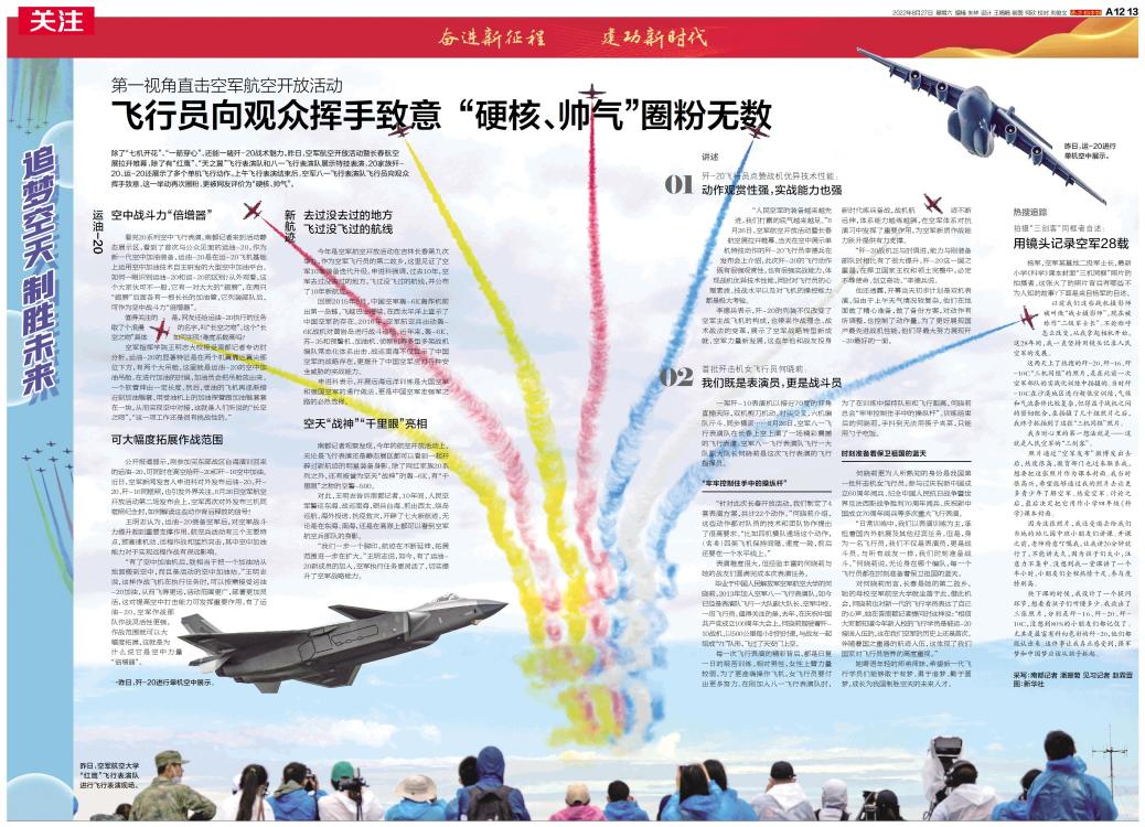 昨日,空军航空大学“红鹰”飞行表演队进行飞行表演现场。 昨日,歼-20进行单机空中展示。 昨日,运-20进行单机空中展示。