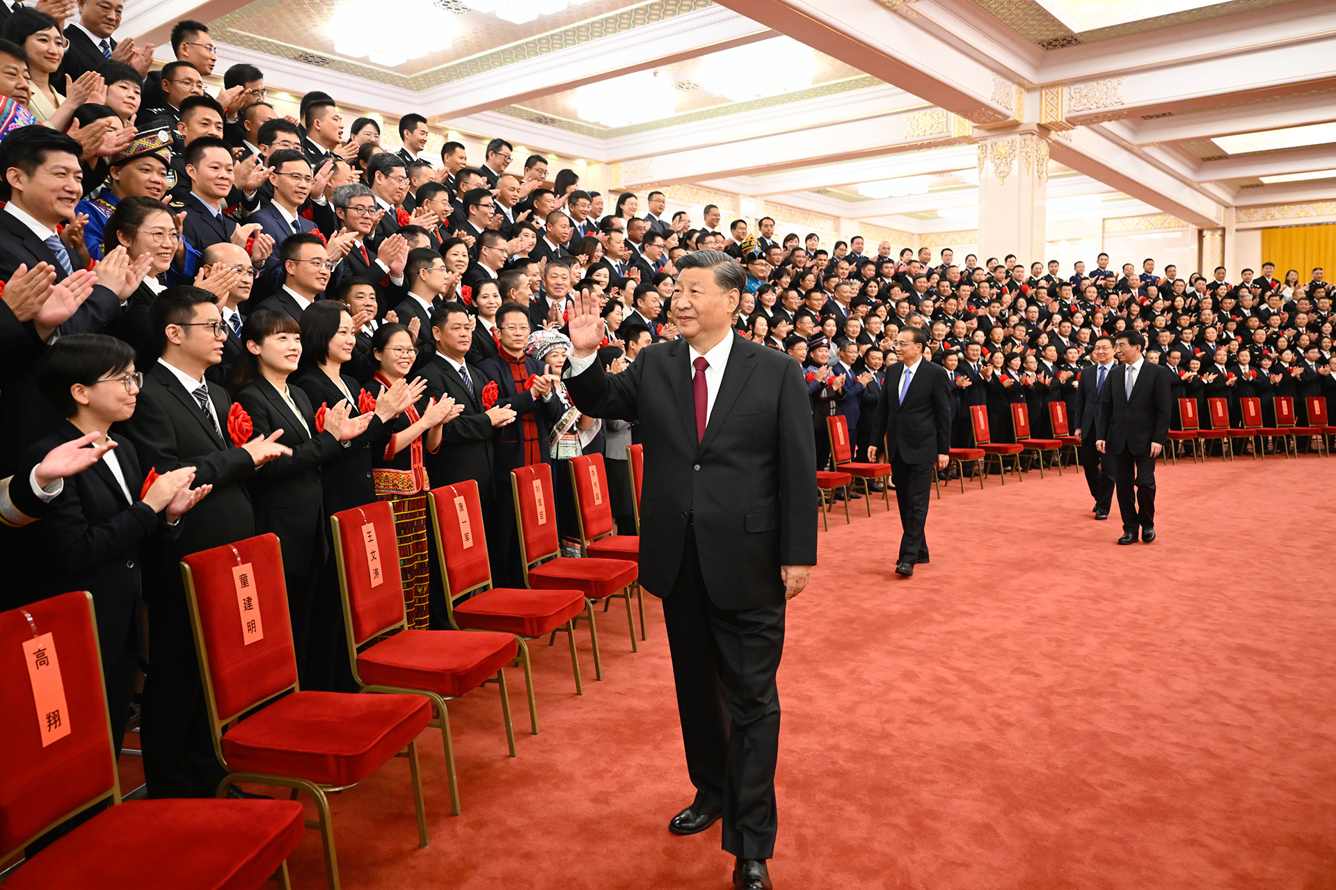 8月30日,党和国家领导人习近平、李克强、王沪宁、韩正等在北京人民大会堂会见全国“人民满意的公务员”和“人民满意的公务员集体”代表。 新华社发