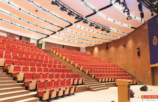 校园内的演讲厅可容纳600人,采用环抱式设计,所有座位均面向舞台中央,即便坐在最后一排,也能获得清晰的视野。