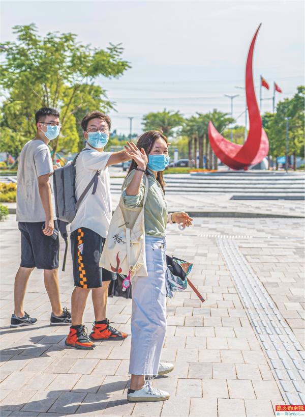 8月24日,香港科技大学(广州)红鸟广场,入学新生面带笑容,他们将在这里开启校园生活新篇章。 南都拍客 陈晓红 摄