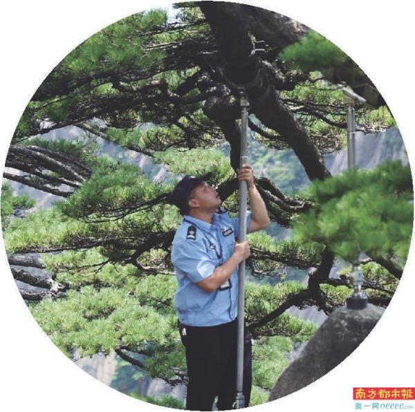 胡晓春:我还记得,2012年台风“海葵”来袭,降雨量、风力颇大,情况特别紧急,大家出去一趟全身很快湿透。当时,整个应急保护团队分成了两个班组开展巡护。大家做好安全措施,迎着风雨前往迎客松的保护区域。台风之下,迎客松枝条的摆幅较大,支撑杆随时会移位,我们需要及时复位。