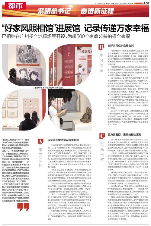 “看镜头,再靠近一点……”随着“咔嚓”一声,一张张充满温暖和爱的全家福被定格,照片背后则是各不相同的家风故事。 8月31日,“好家风照相馆”在中共广东省直属机关工作委员会、广东省精神文明建设办公