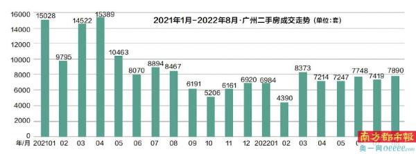 “4·21”新政效果立竿见影。2021年5月,广州二手房成交量跌至万套出头水平,随后一跌再跌,2021年6月至8月,成交量均在9000套以内。“已经回到了本轮楼市上涨之前的水平。”肖文晓表示。