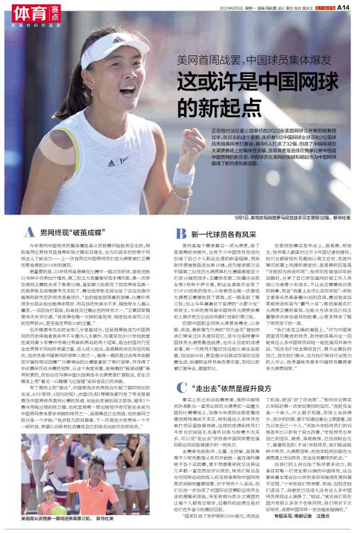 正在纽约法拉盛公园举行的2022年美国网球公开赛刚刚赛程过半。在过去的这个星期,先后有5位中国网球女球员和2位男球员亮相美网单打赛场,其中5人打进了32强,创造了中国网球在大满贯赛场上的集体性突破