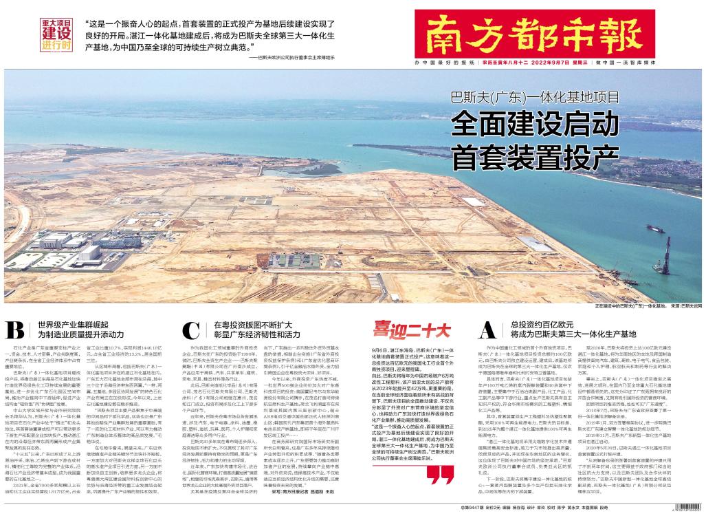 正在建设中的巴斯夫(广东)一体化基地。 来源:巴斯夫官网 9月6日,湛江东海岛,巴斯夫(广东)一体化基地首套装置正式投产。这意味着这一总投资达百亿欧元的我国化工行业