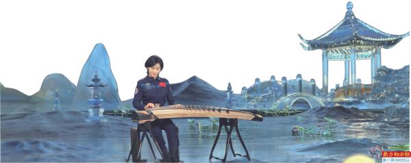 航天员刘洋弹古筝。
