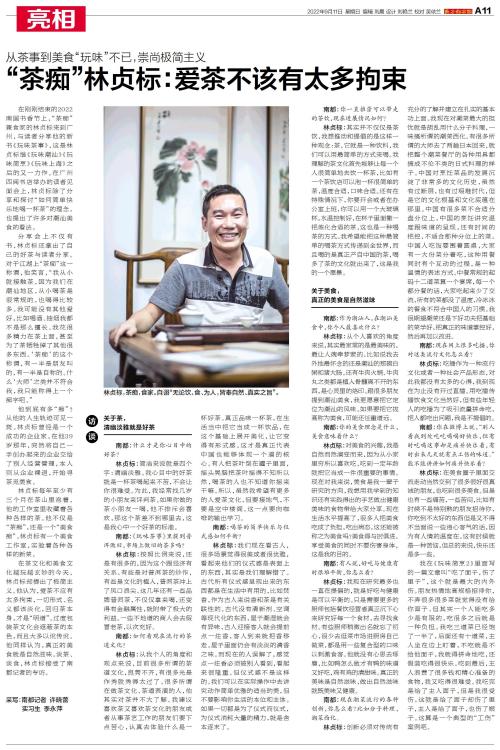 林贞标,茶痴,食家。自诩“无论饮、食、为人,皆奉自然、真实之旨”。 在刚刚结束的2022南国书香节上,“茶痴”兼食家的林贞标来到广州,与读者分享他的新书《玩味茶事》,这