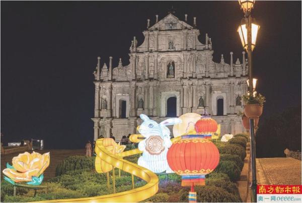 近日,澳门市政署在大三巴牌坊前设置中秋节日灯饰,让市民和游客感受传统节日气氛。 南都拍客 张志峰 摄