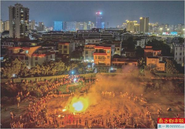 肇庆白石村,村民“甩火球”闹中秋。白石村“甩火球”被列入端州区非物质文化遗产项目名录。 南都拍客 严国明 摄