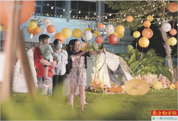 9月11日,深圳宝安区,一场以中秋灯会为主题的集市,设置了露营、射箭、猜灯谜等活动。 南都拍客 刘源顺 摄