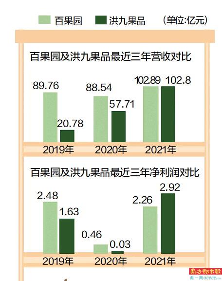 不仅如此,在2021年,洪九果品的净利润还反超了百果园。2019年-2021年,洪九果品分别实现净利润1.63亿元、275.4万元、2.92亿元,同期,百果园分别实现净利润2.48亿元、4565.8万元以及2.26亿元。
