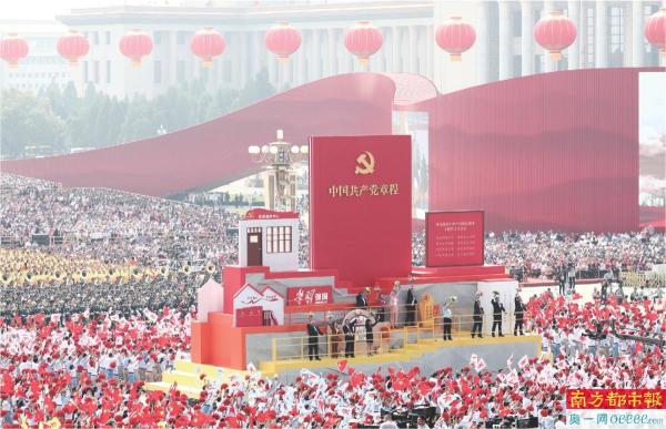 2019年10月1日上午,庆祝中华人民共和国成立70周年大会在北京天安门广场隆重举行。这是群众游行中的“从严治党”方阵。 新华社发