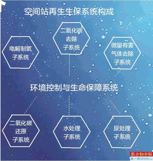 当前,该系统包括6个再生子系统,即电解制氧子系统、二氧化碳去除子系统、微量有害气体去除子系统、尿处理子系统、水处理子系统和二氧化碳还原子系统。