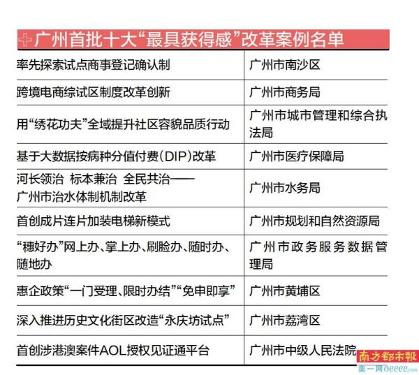 市委改革办相关负责人表示,首批十大“最具获得感”改革案例是近年来广州市深入学习贯彻习近平总书记关于全面深化改革重要论述,认真落实省委深改委部署要求,坚持以人民为中心推进改革的实践成果,既展现了广州这座城市的温情和暖意,也诠释了广州人实干不蛮干、守正又创新的实劲巧劲。从评估调查情况看,这些案例之所以深受群众认可和好评,是因为它们不是花架子,而是真真正正改到了市民群众心坎上。接下来,市委改革办将发挥好首批“最具获得感”改革案例的示范引领作用,及时总结一批新的改革创新举措和鲜活经验,着力打造更多群众认可的改革品牌,不断提升广州改革“显示度”和影响力,推动改革更好服务经济社会发展大局。