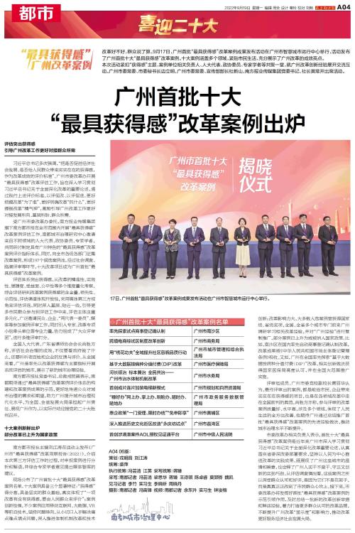改革好不好,群众说了算。9月17日,广州首批“最具获得感”改革案例成果发布活动在广州市智慧城市运行中心举行,活动发布了广州首批十大“最具获得感”改革案例。十大案例涵盖多个领域,紧贴市民生活,充分展