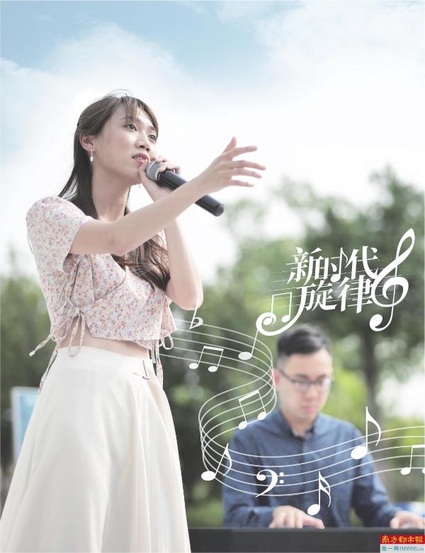 珠海横琴分会场,《新时代旋律》唱作人、澳门青年黎翰澄、刘嘉怡带来歌曲《七子新歌》。 南都记者 钟锐钧 摄