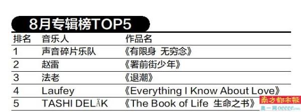 8月专辑榜TOP5