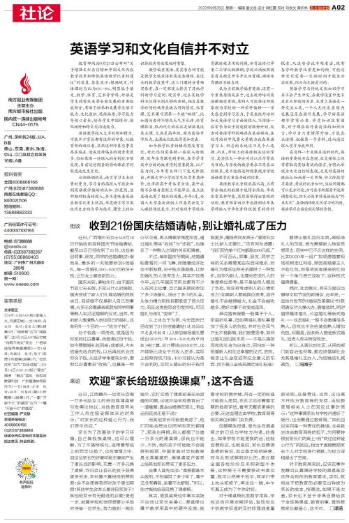 在这样一个互联互通的时代,英语的重要性不容忽视。社交媒体上经常有取消英语考试的谣言,并将此举视为文化自信的表现,足见对英语的狭隘认知尚有一定市场。什么阶段学习英语,考试的比重如何,这些问题都可以充分讨论,亦可在不断探索中逐渐调整优化,但不必简单将英语视为“外来文化”。在强调传统文化学习的同时,英语学习应该受到足够的重视。