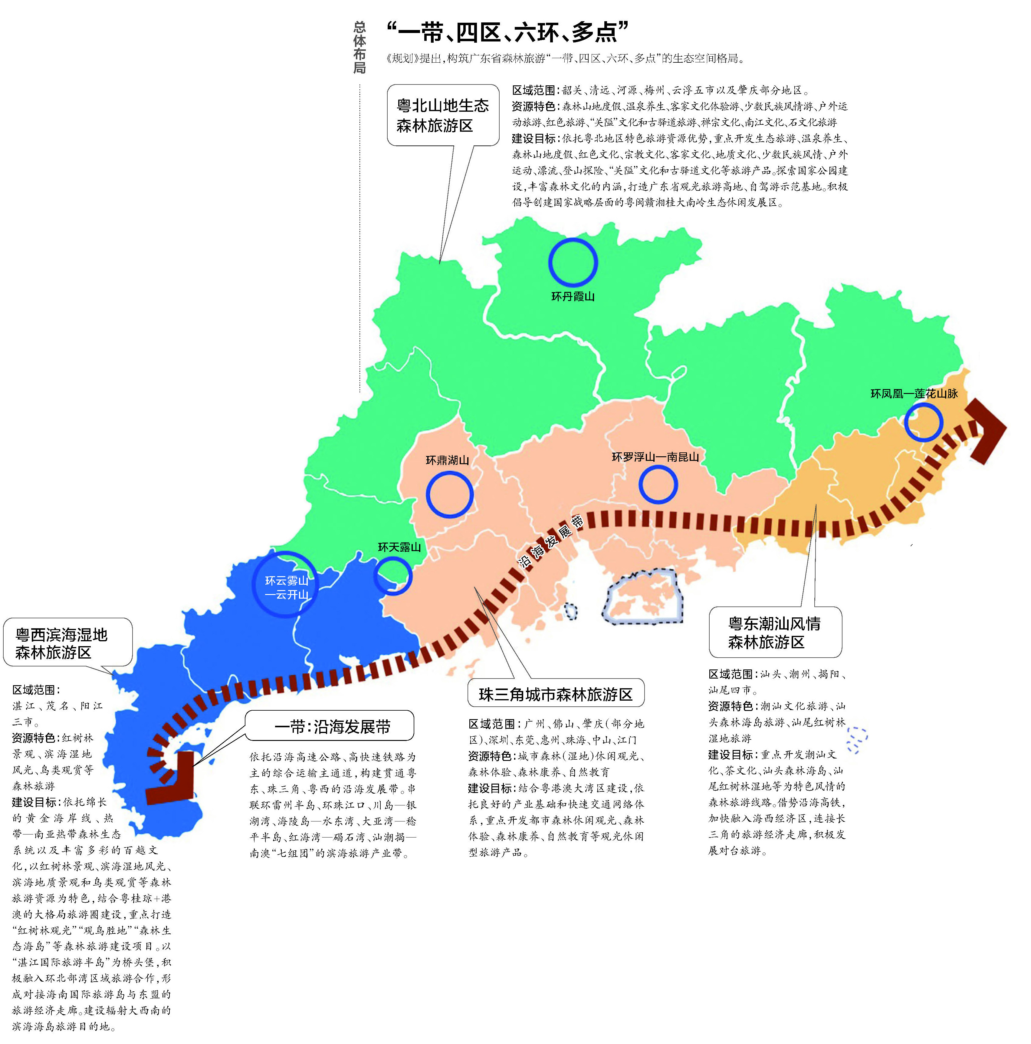 《规划》提出,构筑广东省森林旅游“一带、四区、六环、多点”的生态空间格局。