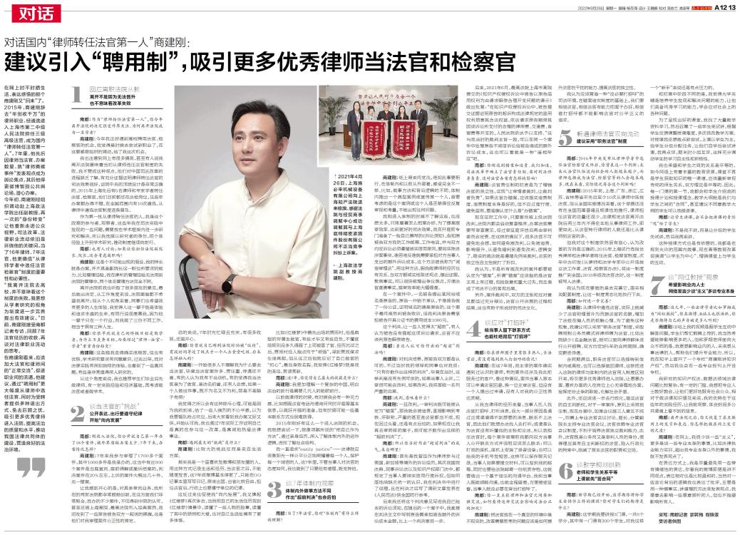 在网上时不时晒生活、表达感悟的那个商建刚又“回来”了。 2015年,商建刚辞去“年创收千万”的律师职业,经遴选进入上海市第二中级人民法院担任三级高级法官,成为国内“律师转任法官第一人”。7年里,