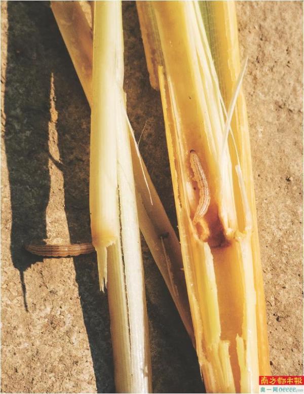二化螟,国内水稻危害最大,也是最常发的害虫之一。于是此刻,眼前是成千上万的蠕虫,在稻田里无规则地收缩、蠕动、蚕食和排泄。这是它们烈日下的栖身之所,它们等待着在此羽化成蛾。