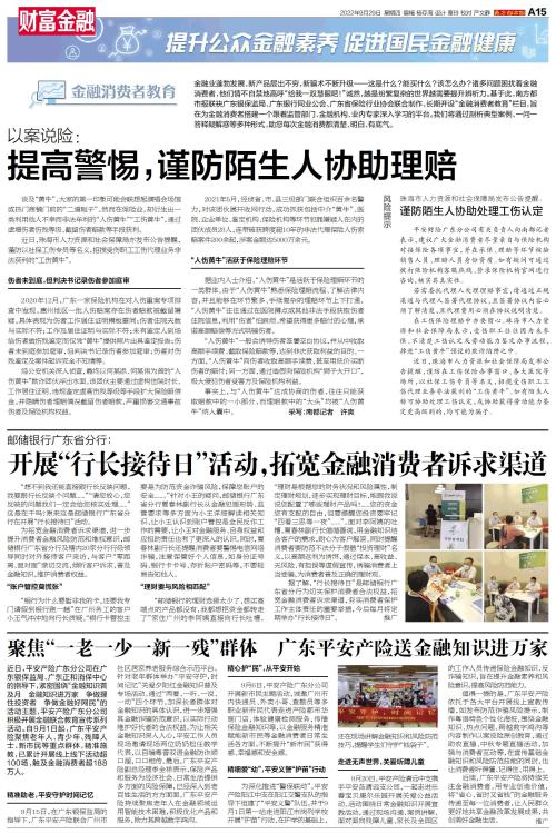 近日,平安产险广东分公司在广东银保监局、广东正和消保中心的指导下,紧密围绕“金融知识普及月 金融知识进万家 争做理性投资者 争做金融好网民”的活动主题,平安产险广东分公司积极开展金融联合教育宣传系