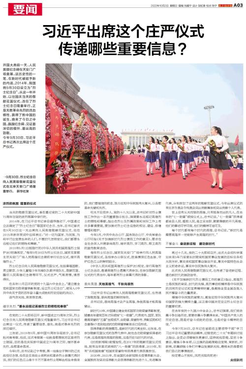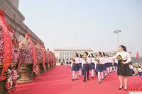 9月30日,烈士纪念日向人民英雄敬献花篮仪式在北京天安门广场隆重举行。 新华社发 开国大典前一天,人民英雄纪念碑在天安门广场奠基。这历史性的一笔,在新时代被赋予新的内涵