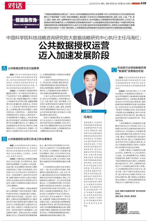 人物简介 冯海红 管理学博士,中国科学院科技战略咨询研究院大数据战略研究中心执行主任、副研究员,曾挂职贵州省大数据发展管理局政策法规与标准规范处副处长,目前兼任山东省数字经济专家咨询委员会委员