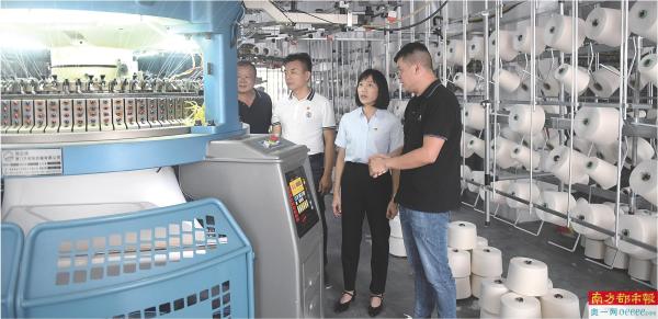 陆秀兴(右二)在佛山市禅城区张槎街道古灶村内一处产业园了解企业投资生产情况(2022年9月7日摄)。